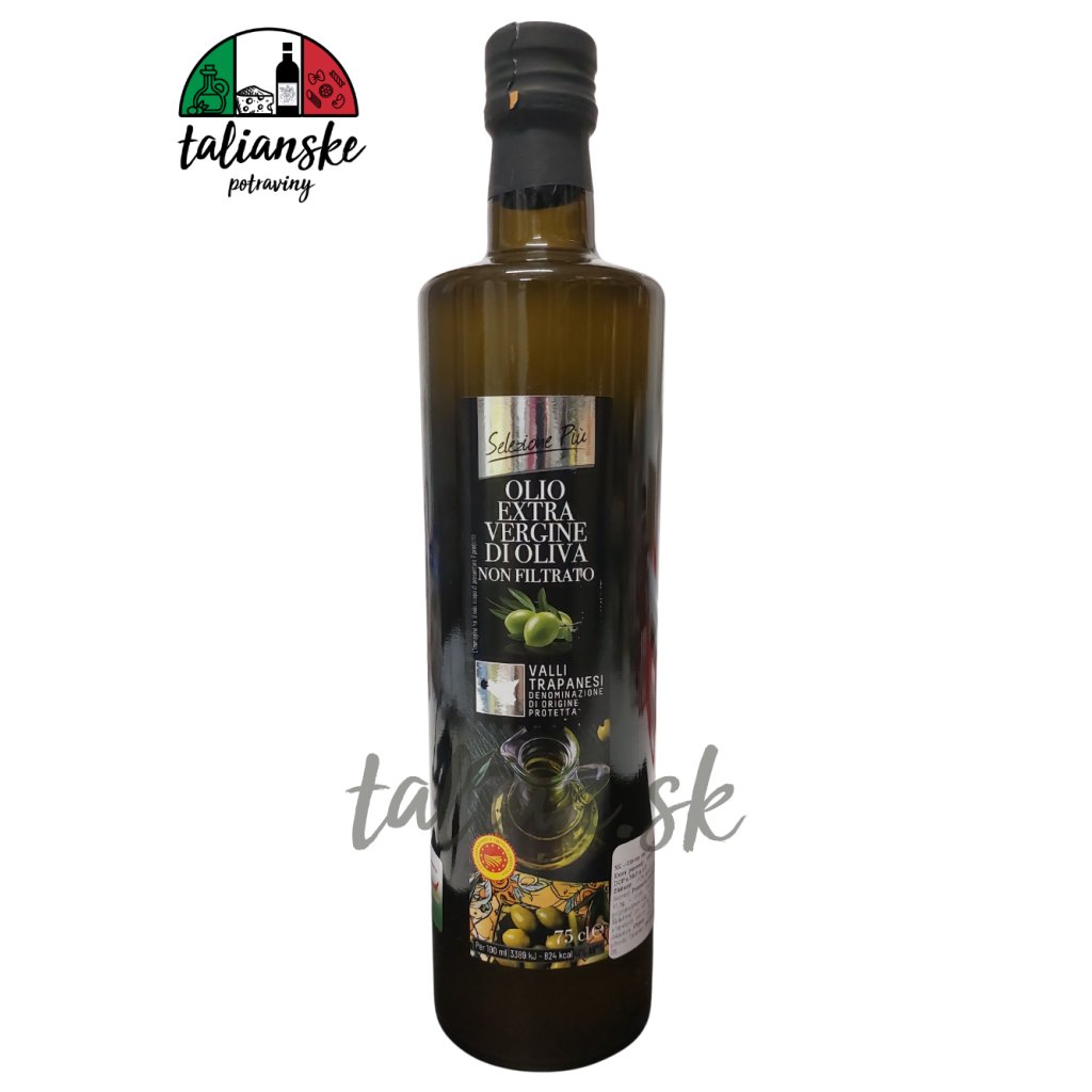 Výnimočný, nefiltrovaný olej pochádzajúci zo Sicílie z oblasti Valli Trapanesi, označenie DOP zaručuje vysokú kvalitu potvrdenú prísnymi kontrolami kvality olív, výroby aj výsledného produktu.